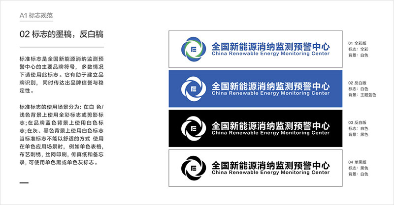 制約新能源消納的關(guān)鍵因素,為新能源的優(yōu)化布局和行業(yè)政策制定提供參考,促進(jìn)我國新能源高質(zhì)量發(fā)展。 藍(lán)藍(lán)設(shè)計(jì)對全國新能源消納監(jiān)測預(yù)警中心的工作范圍做了調(diào)查研究,首先理解業(yè)務(wù)和核心競爭力,之后調(diào)查了行業(yè)相關(guān)品牌標(biāo)志設(shè)計(jì),聽取了大家的期望,之后設(shè)計(jì)出多版logo供選擇。標(biāo)志設(shè)計(jì)確定后進(jìn)行了VI和宣傳冊的設(shè)計(jì)。