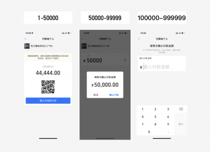 金額超出限制后,通過(guò)組件toast提示“付款金額超限”,第一提示框組件很好的限制鍵盤(pán)的數(shù)字輸入,避免用戶(hù)無(wú)效輸入,第二toast提示框的觸發(fā)時(shí)機(jī)設(shè)計(jì),這里的方案是當(dāng)輸入金額超百萬(wàn),按數(shù)字鍵盤(pán)的時(shí)候就會(huì)給予提示,而不是等用戶(hù)輸入完之后,再去按確認(rèn)鍵的時(shí)候,彈出來(lái)提示金額超限。
