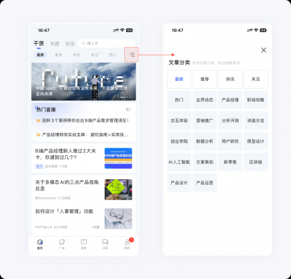 為了讓用戶(hù)第一時(shí)間就能夠看到自己感興趣的標(biāo)題內(nèi)容,在內(nèi)容展示上,我們針對(duì)重點(diǎn)的信息進(jìn)行了強(qiáng)化。將主次信息,從色彩到字重上進(jìn)行了優(yōu)化。新版的設(shè)計(jì)采用加粗的標(biāo)題文字和淺灰色的輔助信息,拉開(kāi)對(duì)比,強(qiáng)化重點(diǎn),讓用戶(hù)更快找到自己感興趣的內(nèi)容。