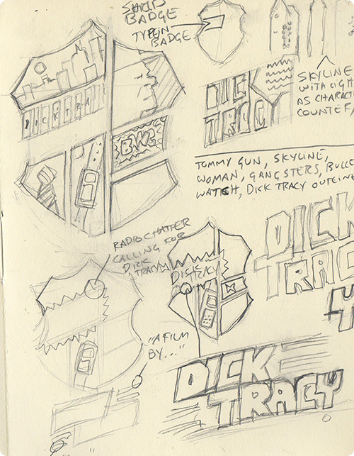 Alex 所分享的這張Dick Tracy 海報(bào)是他為 Silver Screen Society 創(chuàng)作的,對(duì)比最后的成品,草稿的詳盡程度可見一斑。