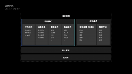 所以如何解決團隊效率和產(chǎn)品質(zhì)量問題?我們的解法是抽象體系化的解決方案:設計模式化和代碼化,設計從原子到全局進行統(tǒng)一和優(yōu)化,并形成系統(tǒng)化的設計指導,由開發(fā)進行模式代碼化,提供靈活可配置的規(guī)則。以此,設計有更系統(tǒng)化的設計原則,整體的統(tǒng)一性和體驗有保障,設計和開發(fā)周期也可以縮減,甚至大部分日常需求可直接由產(chǎn)品對接開發(fā)直接上線。
