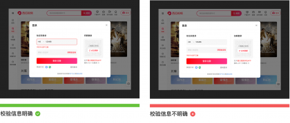 為了避免用戶在提交時(shí)表單時(shí)出現(xiàn)大面積的報(bào)錯(cuò)問題,設(shè)計(jì)師可以使用實(shí)時(shí)校驗(yàn)的交互形式。如:在用戶輸入完成之后鼠標(biāo)失焦后進(jìn)行信息校驗(yàn),但是需要注意的是在實(shí)時(shí)校驗(yàn)時(shí)避免用戶還沒有輸入完成即出現(xiàn)校驗(yàn)誤導(dǎo)用戶,所以需要準(zhǔn)確判斷鼠標(biāo)是否失焦。如下圖所示為西瓜視頻登錄注冊(cè)場(chǎng)景下的截圖: