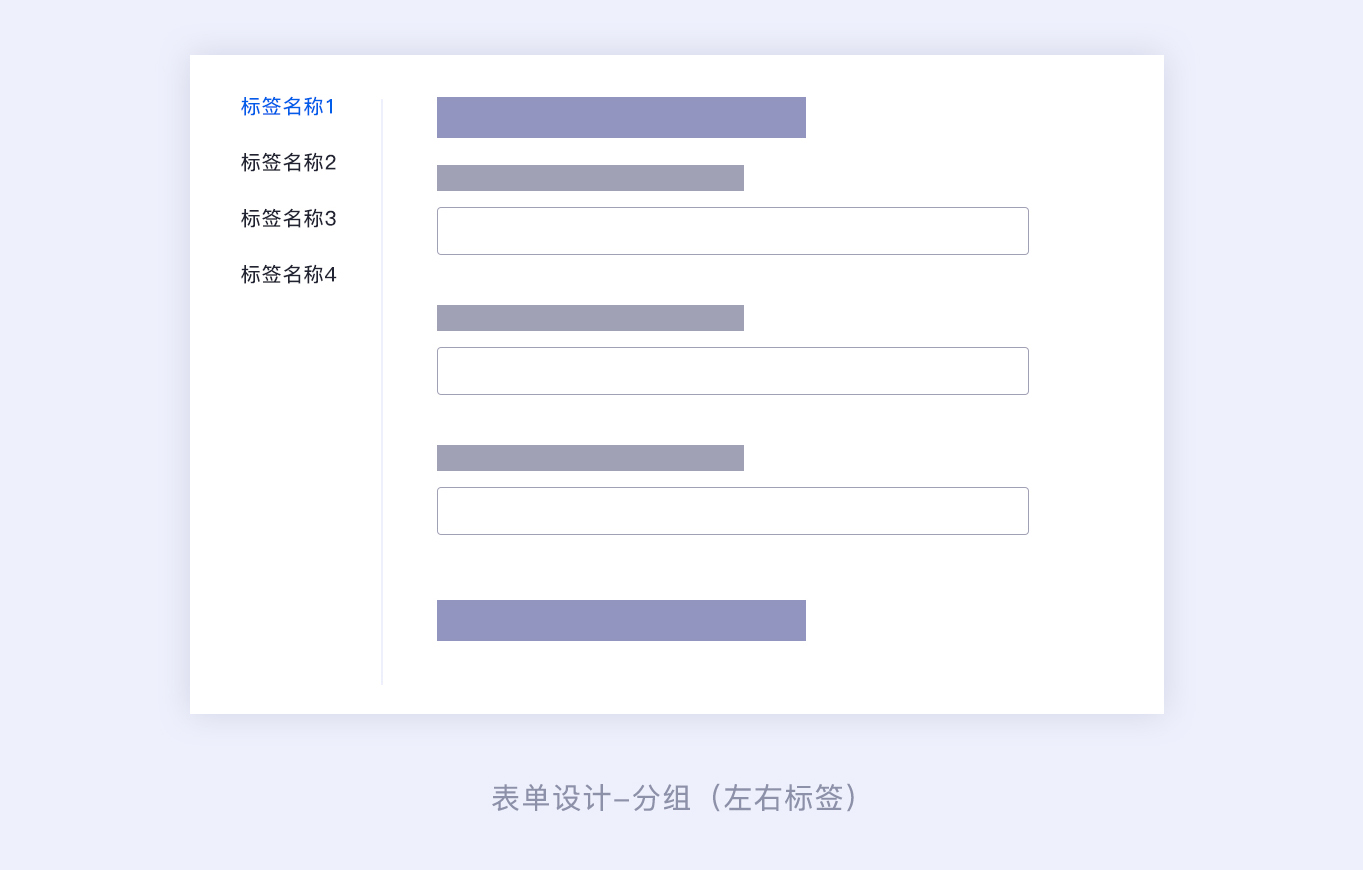 標(biāo)簽分組:指的是將表單信息分組標(biāo)簽化,形成獨立的小表單信息,分為上下結(jié)構(gòu)和左右結(jié)構(gòu)。