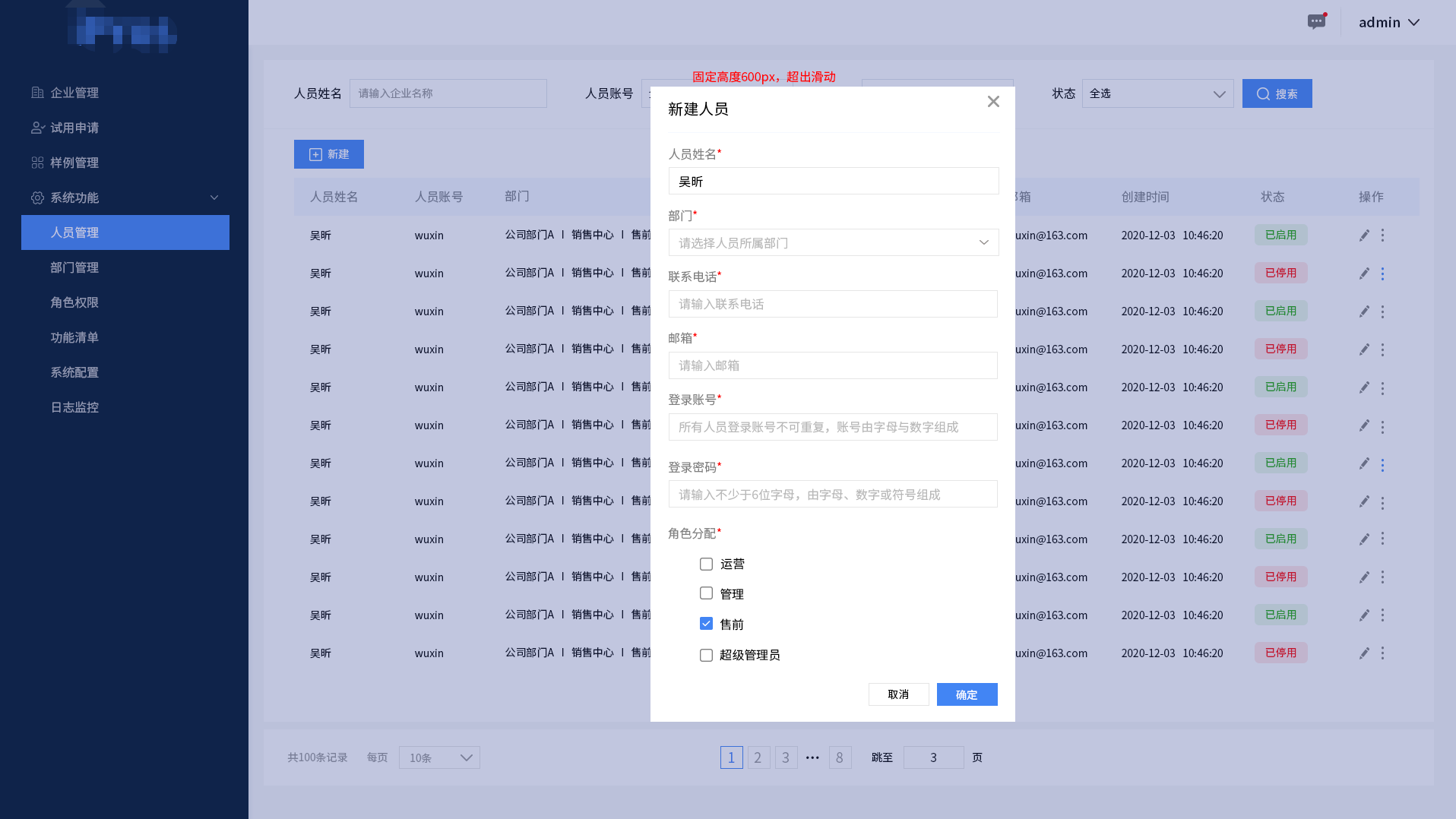 最常見的表單呈現(xiàn)方式即彈窗,無論是在C端還是B端,我們都隨處可見彈窗形式的表單。彈窗表單一般呈現(xiàn)在屏幕中間,底部有暗色遮罩層,將底部信息與彈窗表單隔離,使用戶專注于表單的填寫。彈窗模式的表單一般是針對表單信息較少的情況,并且填寫表單不需要關(guān)注底部頁面的信息。用戶可以在彈窗表單中順利地完成表單的任務(wù)。