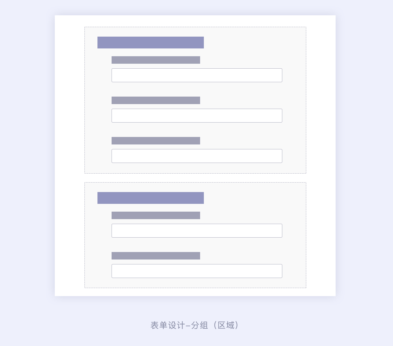 在B端設(shè)計中,一些復(fù)雜的表單會通過區(qū)域分組的形式排版設(shè)計,可以將一個表單的信息通過信息的關(guān)聯(lián)關(guān)系劃分不同的區(qū)域形成小組信息,這樣有利于信息的歸類以及信息的填寫。用戶在看到復(fù)雜表單的時候不會被龐大的表單迷惑,可以更好的找到表單字段,也可以讓用戶填寫表單更有秩序、更清晰。區(qū)域分組的使用場景,一般也是針對復(fù)雜表單且具有強相關(guān)的信息關(guān)系。