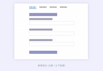 復(fù)雜的表單可以采用區(qū)域分組的形式,還可以采用標(biāo)簽分組的設(shè)計形式。標(biāo)簽分組可以一眼看全所有分組大類信息,對于一個表單涉及到多種信息字段的情況,并且每個組的字段信息都是獨立的,不是強相關(guān)的,那么我們就可以采用標(biāo)簽分組的形式。