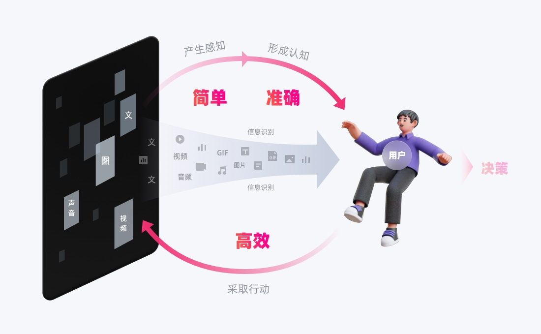 「信息識(shí)別」項(xiàng)目目標(biāo)是為用戶提供「感知上簡(jiǎn)單、認(rèn)知上準(zhǔn)確」的信息,讓用戶與界面的互動(dòng)更高效、流暢。