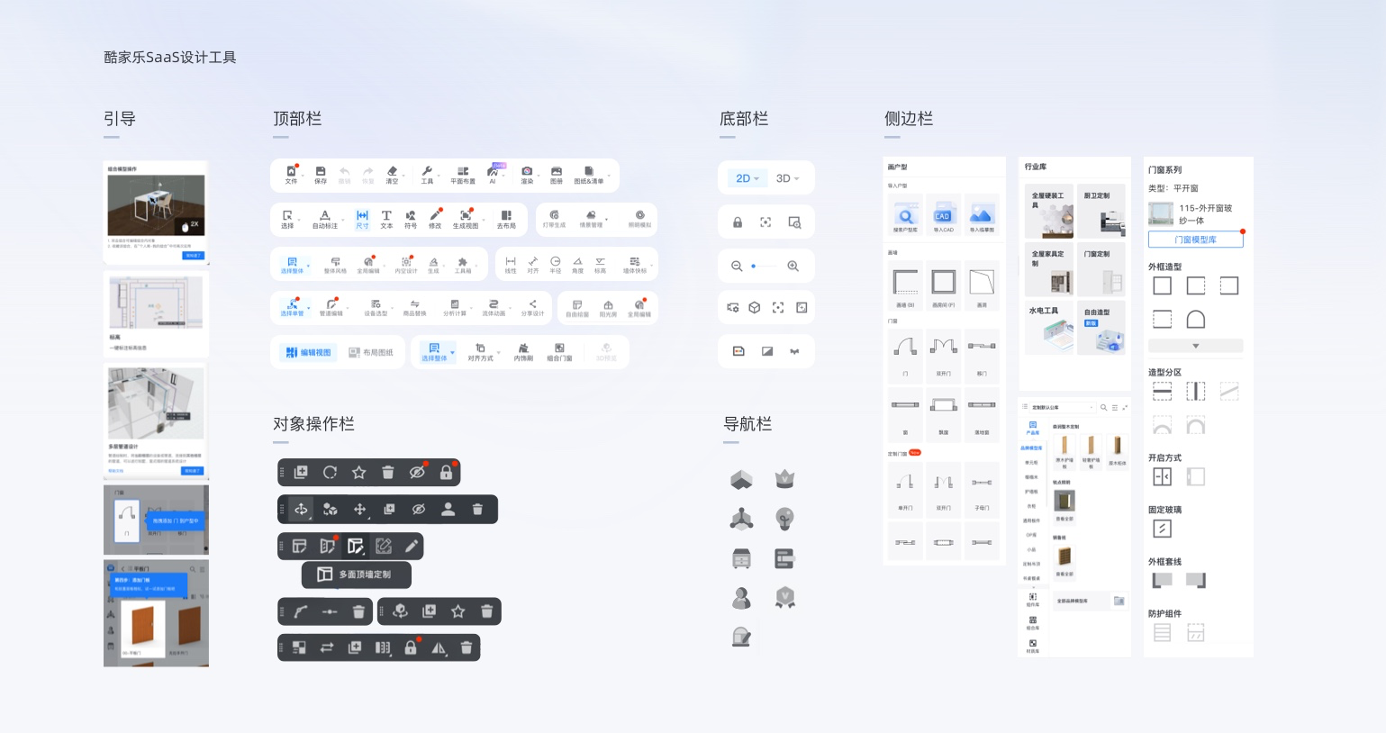 群核科技下產(chǎn)品正是這樣的特點(diǎn),以酷家樂(lè)云設(shè)計(jì)工具為例,系統(tǒng)交互結(jié)合各行業(yè)垂類(lèi)場(chǎng)景,各種命令、操作、引導(dǎo)、畫(huà)面控制等信息的表達(dá)很容易讓用戶疑惑。