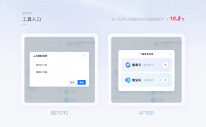 案例1:工具入口的圖形化表達(dá)用戶從工作臺(tái)進(jìn)入到設(shè)計(jì)工具,純文本的表達(dá)用戶很容易產(chǎn)生疑惑,在不改變業(yè)務(wù)邏輯的情況下,進(jìn)行圖形化表達(dá)。
