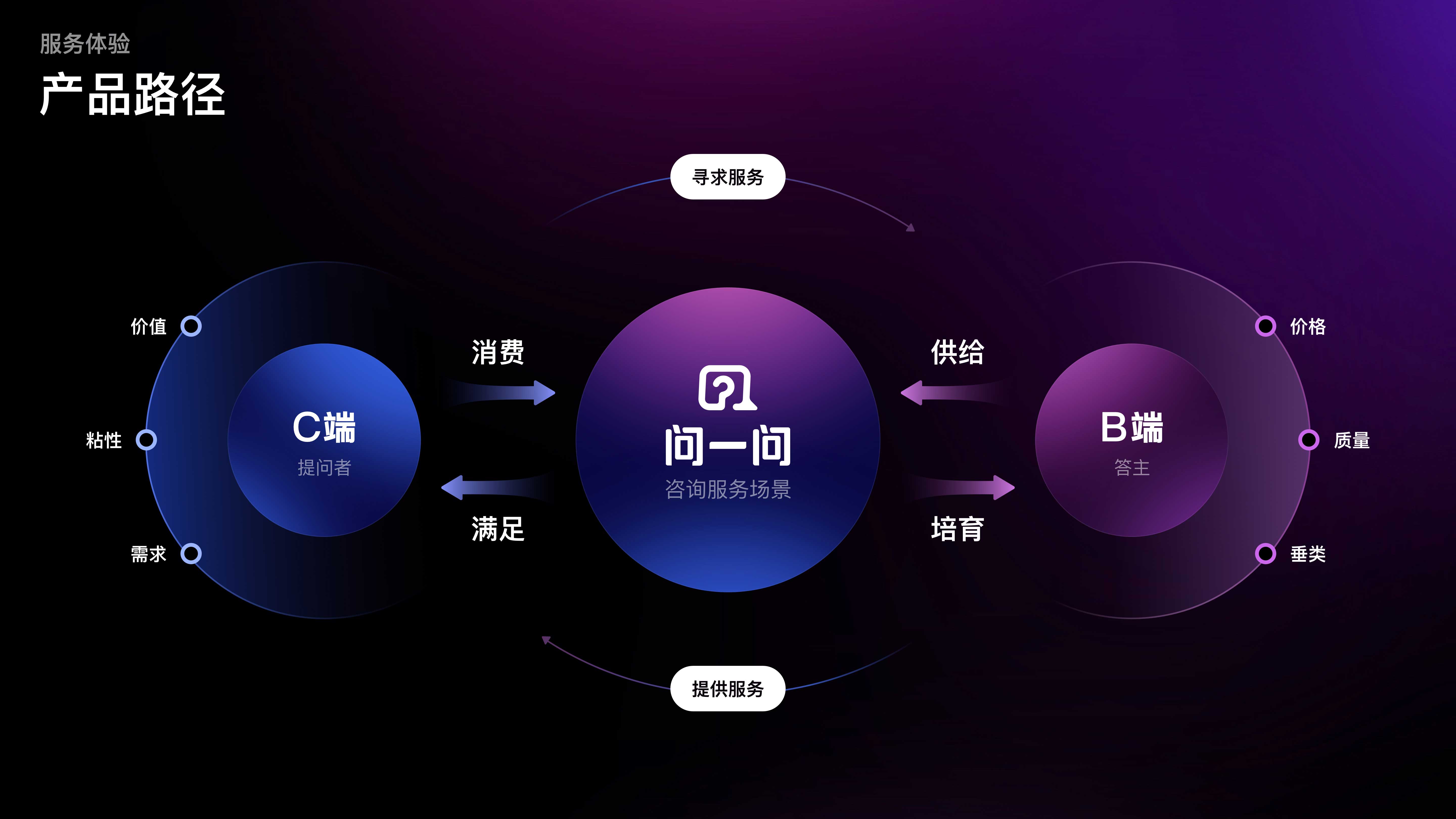 “百度問一問”是一款由真人答主提供1對(duì)1實(shí)時(shí)在線咨詢的服務(wù)型產(chǎn)品,自2020年孵化成功已走過3年半的歷程。作為服務(wù)場(chǎng)域的建設(shè)者,我們的設(shè)計(jì)使命從初創(chuàng)驗(yàn)證階段的基建搭建,到規(guī)模擴(kuò)張期的提轉(zhuǎn)探索,升級(jí)為現(xiàn)階段的追求體驗(yàn)&收入雙線發(fā)展。