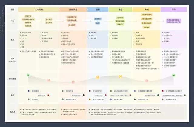 用戶旅程圖的應(yīng)用廣泛,不僅可以幫助我們進(jìn)行流程分析,還可以識(shí)別痛點(diǎn),定義問題域。同時(shí),它也可以幫助我們進(jìn)行用戶反饋的收集和整理,為產(chǎn)品或服務(wù)的優(yōu)化提供依據(jù)。