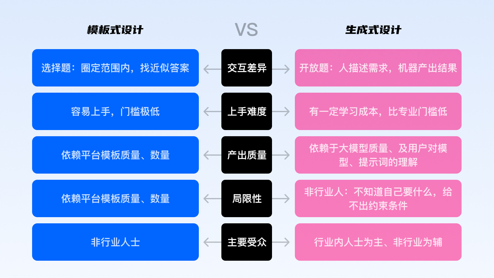 如果不畫圖就快速的產(chǎn)出,模板式設(shè)計(jì)與生成式AI出圖是擺在面前的兩種選擇,模板式設(shè)計(jì)不算AI,可以當(dāng)做“智能產(chǎn)出”,到底哪個(gè)好,核心差異在哪?