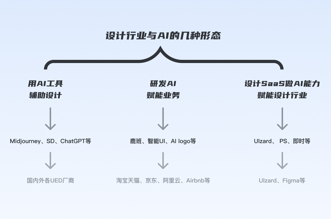 這里不涉及設(shè)計(jì)作為UI、UX接相關(guān)AI業(yè)務(wù)需求的場景,目前主要的關(guān)系是用AI工具輔助設(shè)計(jì),設(shè)計(jì)驅(qū)動(dòng)研發(fā)AI賦能業(yè)務(wù)在部分大廠有,非常稀缺,設(shè)計(jì)SaaS賦能行業(yè)總體來講玩家數(shù)量有限,這里不再贅述。