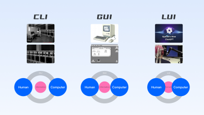 界面交互的需求繁榮得益于圖形交互的興起和市場的發(fā)展,從CLI(命令行)→GUI(圖形交互)→LUI(自然語言交互),對(duì)設(shè)計(jì)服務(wù)的要求自然不同: