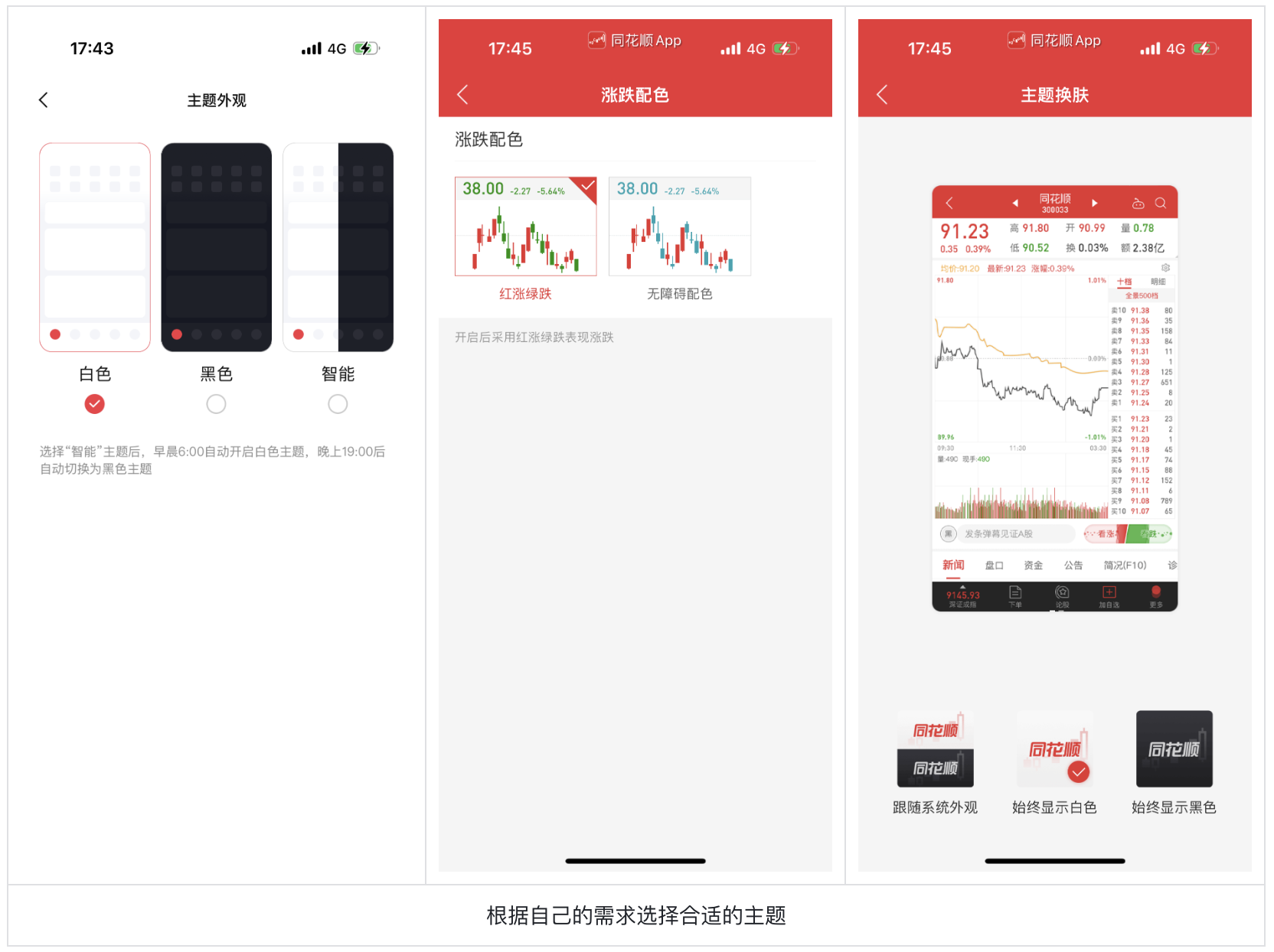 舉個例子,在個股詳情K線圖頁面,上漲用空心圖形表示,下跌用實心圖形表示,這種方法不僅幫助色盲用戶識別信息,還增加了視覺上的吸引力。