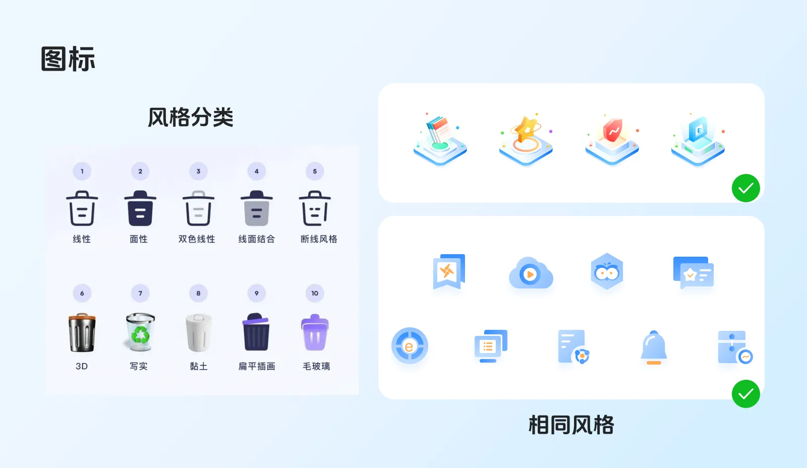 設(shè)計(jì)中視覺上保持統(tǒng)一包括圖標(biāo)的大小、形狀、色彩以及設(shè)計(jì)風(fēng)格等多個(gè)方面,能夠增強(qiáng)用戶的認(rèn)知連貫性,降低學(xué)習(xí)成本,提升使用效率。相反,如果圖標(biāo)風(fēng)格混雜,不僅會(huì)讓界面顯得雜亂無章,還會(huì)給用戶帶來困惑和不安,進(jìn)而影響其對產(chǎn)品專業(yè)性和安全性的信任。