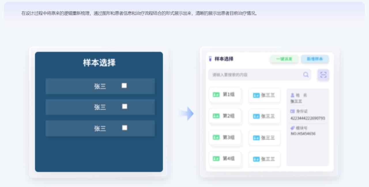 在設(shè)計過程中將原來的邏輯重新梳理,通過圖形和患者信息和治療流程結(jié)合的形式展示出來,清晰的展示出患者目前治療情況。
