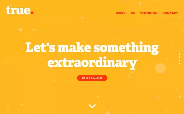 ·單頁設(shè)計(jì):為了最大限度地呈現(xiàn)出各種設(shè)計(jì)效果,這些網(wǎng)站通常會沿用之前的單頁設(shè)計(jì),有些網(wǎng)站會加入標(biāo)準(zhǔn)化的導(dǎo)航來引導(dǎo)用戶進(jìn)入其他的內(nèi)頁。