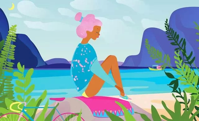 藍(lán)色與多種顏色相搭配,盡量選中一個(gè)作為主色,比如上圖中以藍(lán)色作為主色,無(wú)論是遠(yuǎn)山天空還是河流,包括人物的衣服都是藍(lán)色,與此同時(shí),粉紅作為點(diǎn)睛色。畫(huà)面雖然大量運(yùn)用藍(lán)色,會(huì)偏向冷調(diào),但此處運(yùn)用了紅色、黃色和偏暖的綠色就讓畫(huà)面的顏色達(dá)到了平衡。
