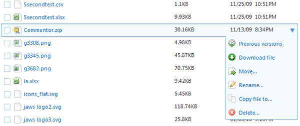 如果每一行里都有多種操作,可以通過鼠標懸?;蛘邌螕粜械臅r候顯示這些操作。DropBox通過一個二級菜單展示了每個文件的多種操作,有效地使用了這種方式。