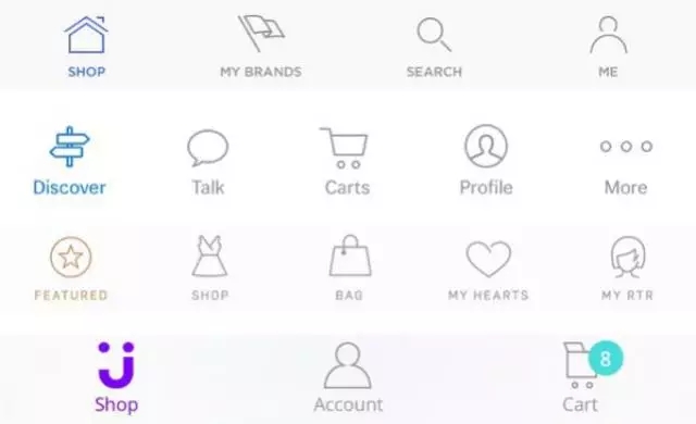 每款APP都需要一套易于識(shí)別的 icon來(lái)輔助信息展示。雖然在這一塊設(shè)計(jì)師的話語(yǔ)權(quán)更強(qiáng),但我也見(jiàn)過(guò)不少因?yàn)?/span>icon的設(shè)計(jì)風(fēng)格而吵得不可開(kāi)交。就拿是填色icon還是線條 icon來(lái)說(shuō),我們把準(zhǔn)備的幾款 APP拉出來(lái)看一下就知道了。就當(dāng)前情況來(lái)看,線條icon更符合大家對(duì)于時(shí)尚、簡(jiǎn)潔的理解。