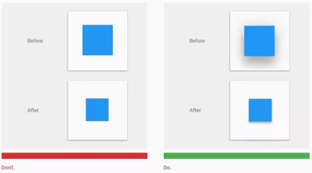 當用戶無法確定控件或者元素是否可以點擊,或者是否已經(jīng)被點擊了,他們就越是需要點擊之后的反饋給予心理安慰。一個元素的高度變化應(yīng)該帶來相應(yīng)的陰影變化: