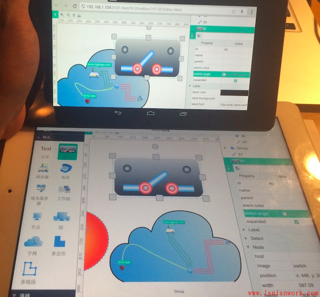 HT 提供了各種豐富的通用組件,以及復(fù)雜的拓?fù)鋱D編輯交互插件 http://www.hightopo.com/guide...,用戶分分鐘可以快速開(kāi)發(fā)出各種各樣的編輯器工具。入門(mén)手冊(cè)中也有個(gè) http://www.hightopo.com/guide... 簡(jiǎn)單的編輯器例子,教用戶如何自定義創(chuàng)建節(jié)點(diǎn)、連線和多邊形的示例教材,學(xué)習(xí)自定義拓?fù)鋱D交互可從此例子入手。