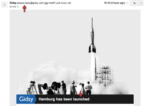 同樣是一幅與其站點風(fēng)格相一致的復(fù)古照片。另外,注意到他們用來發(fā)送郵件的郵箱名稱沒?與常見的做法不同,Gidsy在這里使用了"please-reply",以此向用戶表達自己樂于傾聽意見的姿態(tài)。