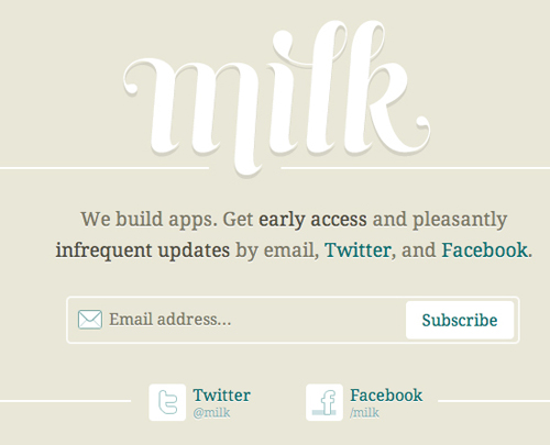 Milk家的細(xì)節(jié)處理方式會讓用戶更加樂于訂閱他們的新聞郵件。他們的做法與Hunch類似,都是在文案中明確的告訴用戶新聞郵件的重要性,而且不會很頻繁。