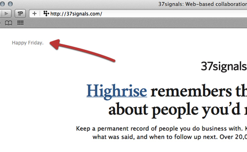而37signals則通過左上角的當(dāng)日問候語來簡單而有效的拉近了網(wǎng)站與用戶之間的情感距離。