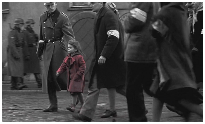 辛德勒名單電影中的某鏡頭,通過色彩強烈的對比拉開視覺層次,給觀眾留下了深刻的印象同時成為經(jīng)典