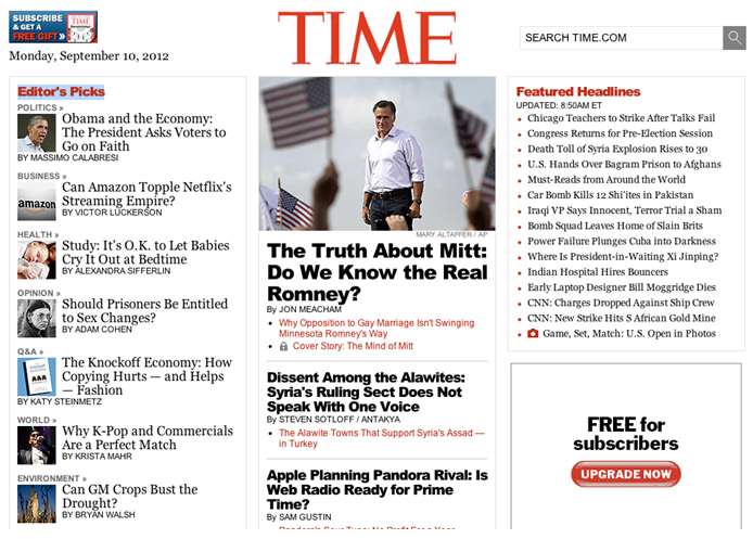 我們看新聞時首先要關(guān)注的當(dāng)天的頭條新聞,其次是編輯推薦的,時代周刊首頁很好的讓頭條新聞和logo一起第一眼被我們捕捉到,主次處理的很清晰