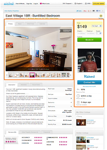 上圖是Airbnb的租房信息detail頁面,租客在租房時最關(guān)心的信息為:房間實景、價格、房東的信息;看它的detail信息,也存在很多種類型,但用戶最關(guān)心的三類信息因為位置、占用的面積大小讓租客一眼就能掌握房子的基本信息,如有興趣再繼續(xù)看更多詳情。