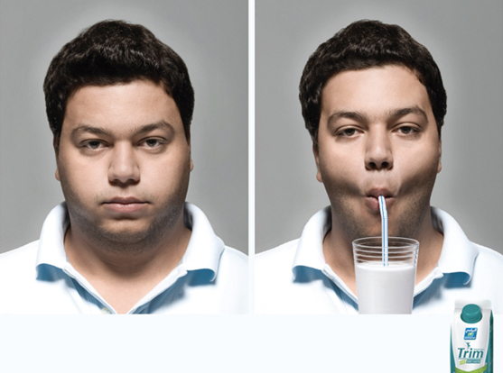 上圖是一個減肥飲料的廣告,通過前后人物的變化,輕松的表達產(chǎn)品的功效,而在我們網(wǎng)頁界面中,主要還是通過色彩的對比和方向指向來傳達順序關(guān)系