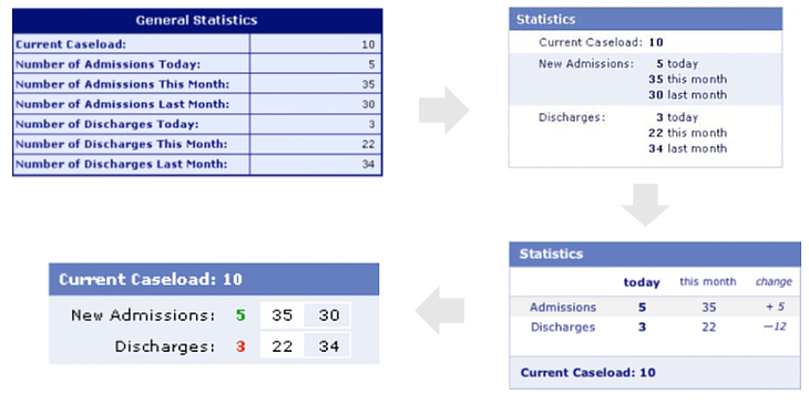 上圖是設(shè)計師對數(shù)據(jù)表格的優(yōu)化過程,第一版為簡單的信息羅列;去掉重復(fù)的文案后并將表格本身的設(shè)計弱化,突出內(nèi)容本身,第二版相對清晰了很多;第三版繼續(xù)將重點進行加粗,改變排列方式可再次減少文案重復(fù)情況;第四版是該表格用戶調(diào)研過程中反映最好的版本,因為用戶會長期使用該表格來獲取數(shù)據(jù),設(shè)計將非重點文案進行隱藏,用戶鼠標(biāo)移上后才顯示該數(shù)據(jù)代表的含義,教育過一次后用戶再看這個表格就不再受眾多解釋文案的干擾,直接獲取想要的信息;一個看似簡單的表格,抓住重點信息,優(yōu)化空間還是很大的。