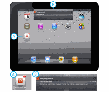 下圖所示的是相片日志應(yīng)用推送過來的評論提示: