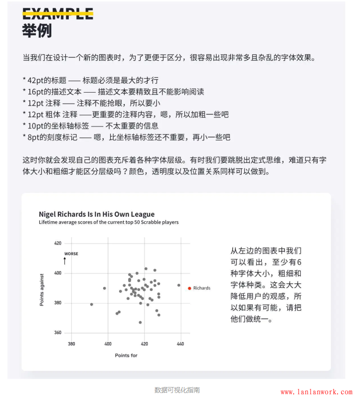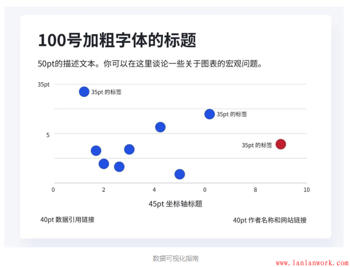 避免有個(gè)性的襯線字體,字體要保證清晰可見(jiàn)。字體大小適中,太小影響閱讀,太大容易占用圖表控件。普通字體大概12px,標(biāo)題用14px。
