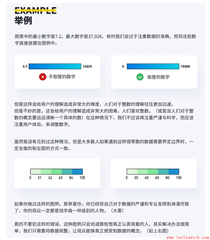 (4)連續(xù)型數(shù)據(jù)通過(guò)漸變色來(lái)展示數(shù)據(jù)大小的變化。