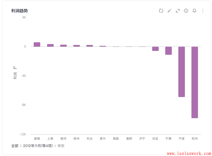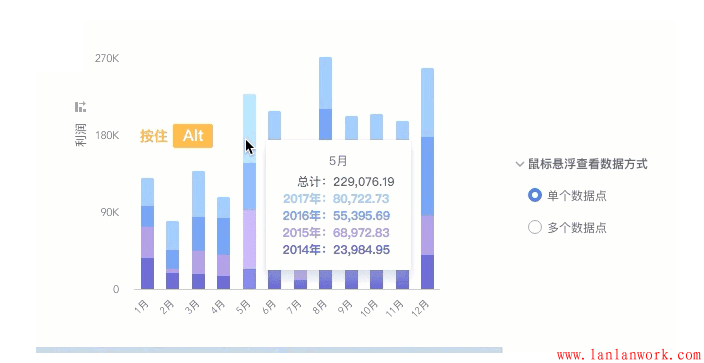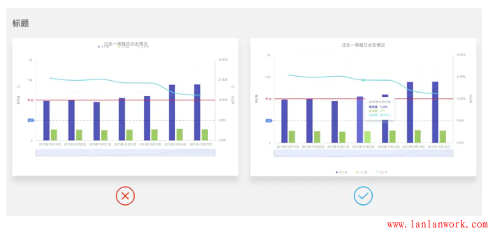 (1)輕量。眾所周知表格是可以承載數(shù)據(jù)的全面性,但將相同的數(shù)據(jù)用可視化展示時(shí),設(shè)計(jì)師總想將所有的信息堆砌在圖表上,顯得圖表非常笨重,因此增加了用戶的思考時(shí)間。在此建議明確你圖表類(lèi)型的特點(diǎn),將主要信息呈現(xiàn)在圖表上或者分層展示圖表,比如數(shù)據(jù)鉆取功能。