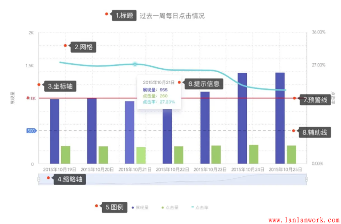 數(shù)據(jù)產(chǎn)品不要試圖去掩蓋問(wèn)題,而要反映真實(shí)數(shù)據(jù),暴露問(wèn)題,并且和用戶一同解決。比如對(duì)數(shù)據(jù)閾值進(jìn)行監(jiān)測(cè),預(yù)警線就是很友好的可視化方式。