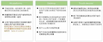那么,怎樣在實際運用中做好輪播圖設計呢,作者將 10 原則分成了四個部分來進行闡述: