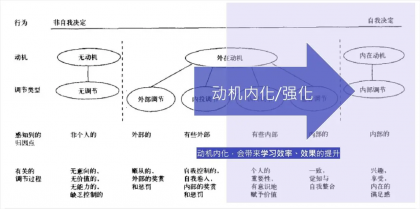 回歸到自我決定理論來看,大部分學生都處在非自我決定的階段,以無動機或外在動機的外部調(diào)節(jié)和內(nèi)投調(diào)節(jié)為主,他們對學習沒有動機,很難堅持。從動機側(cè)來看,我們要做的是把學生的動機內(nèi)化/強化,去提升學習效率和學習效果的提升。