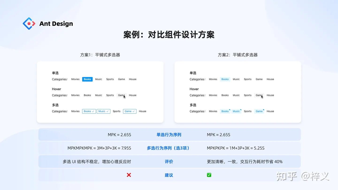 滿(mǎn)足一個(gè)「行為目的」可以有千萬(wàn)種組件解決方案,那么哪種方案是最適合成為規(guī)范的呢?接下來(lái)第二部分就會(huì)跟大家分享如何評(píng)估組件方案的好壞。