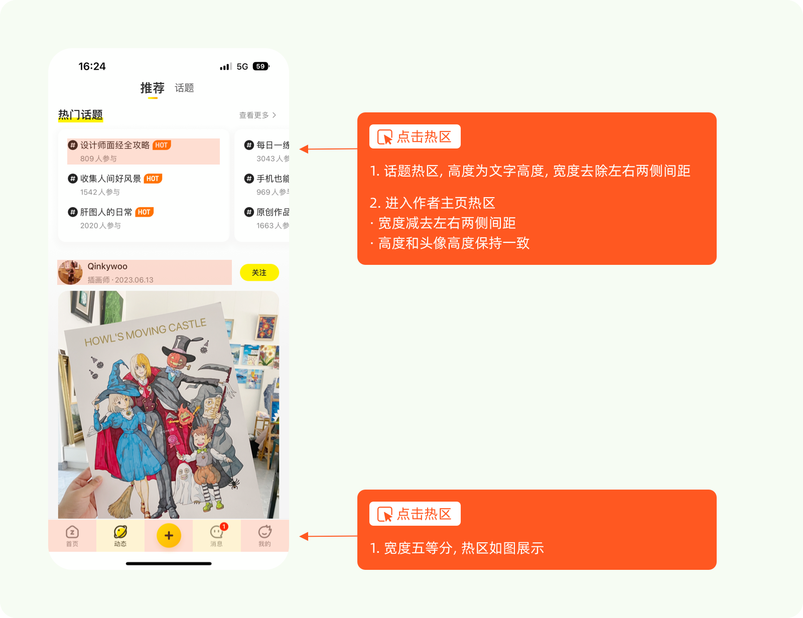 點(diǎn)擊熱區(qū)是指用戶(hù)在界面上最容易點(diǎn)擊的區(qū)域??梢詷?biāo)注出點(diǎn)擊熱區(qū)的位置、大小和形狀,以便團(tuán)隊(duì)成員在實(shí)現(xiàn)交互時(shí)更好地考慮用戶(hù)體驗(yàn)和操作習(xí)慣。