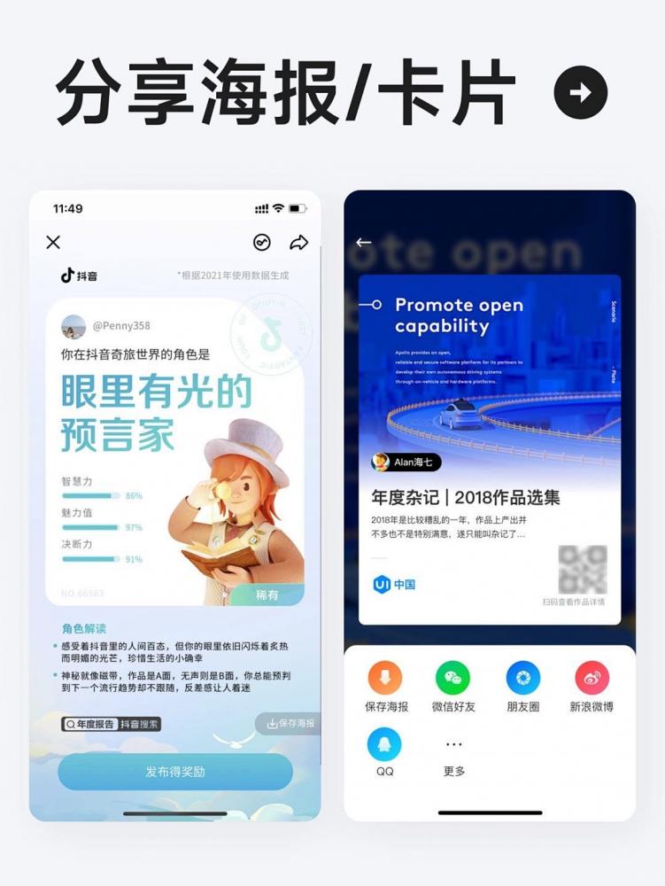 動作欄是通過用戶主動操作后彈出的內容信息,基本都是從底部彈出,屏幕占用比例根據內容量的多少比較隨意,從小區(qū)域、半屏、再到全屏隨處可見。