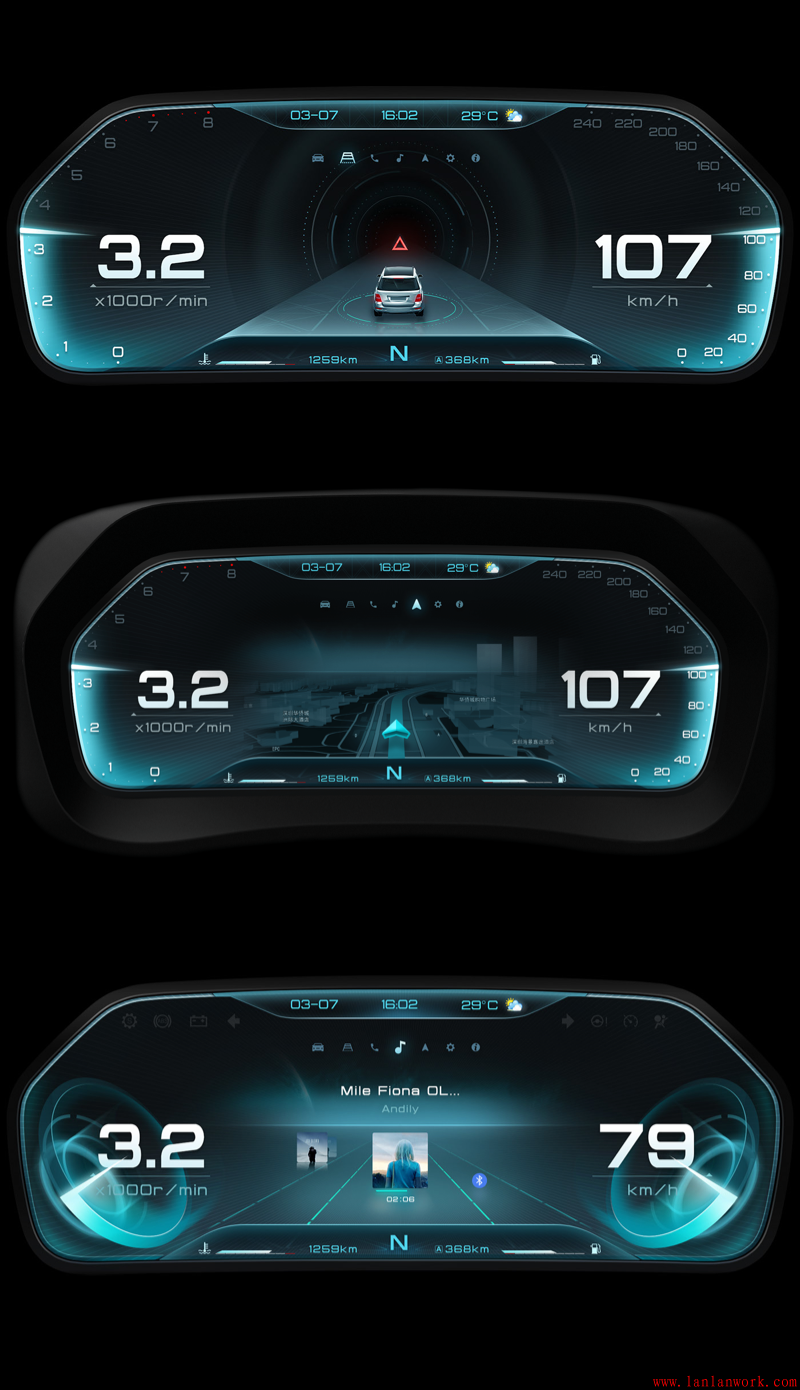 視覺(jué)層面上,一般來(lái)說(shuō)識(shí)別度比較重要,能更直觀的展示模型可視化信息就好,但是可視化信息的表現(xiàn)形式可以作為視覺(jué)設(shè)計(jì)的重點(diǎn),可以是線性模型,也可以是白模等等,要去契合車機(jī)的主題、顏色、概念,又要達(dá)到可視化的要求。
