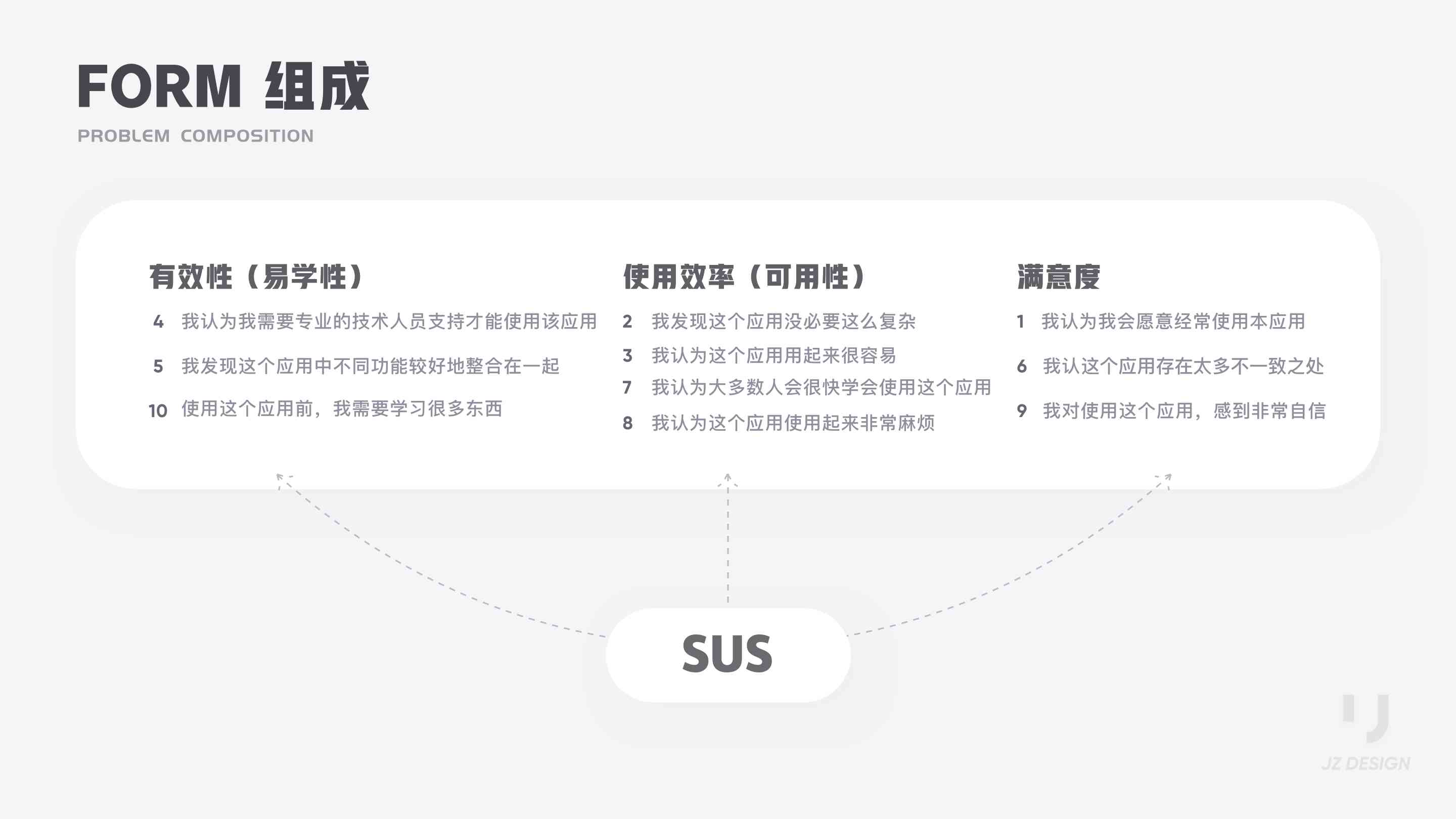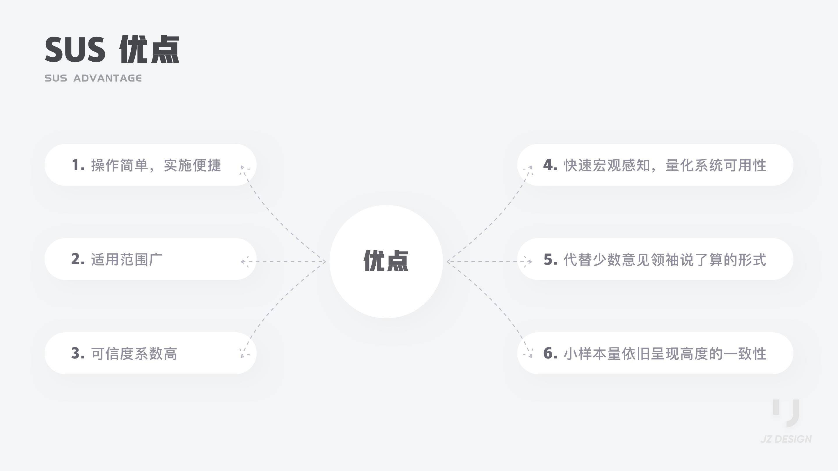 SUS適用范圍廣泛,產(chǎn)品新舊版本迭代之間對(duì)比,同類型競(jìng)品之間對(duì)比,同一產(chǎn)品不同終端之間對(duì)比均可使用。可采用線上線下問(wèn)卷調(diào)研的方式,簡(jiǎn)單高效的采集真實(shí)用戶反饋。避免在初期過(guò)早的關(guān)注細(xì)節(jié)。
