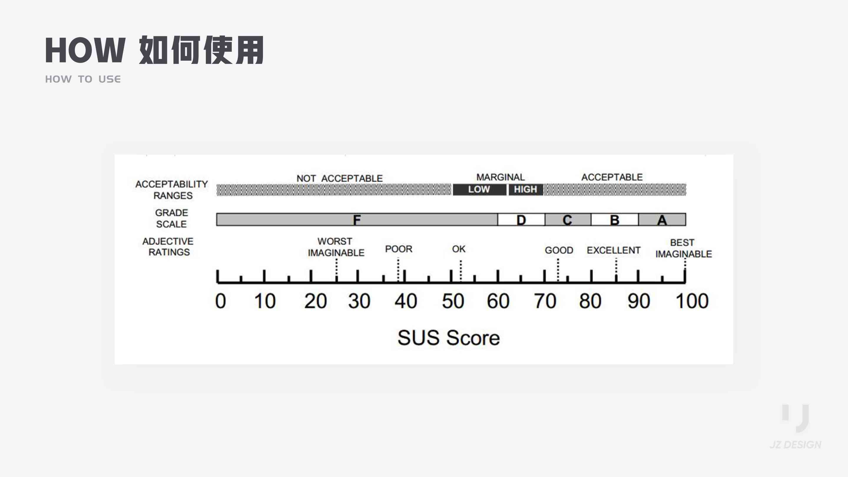 我將其翻譯過(guò)后得到中文表,可以大體上感知得出的SUS分?jǐn)?shù)對(duì)應(yīng)的用戶可接受范圍。