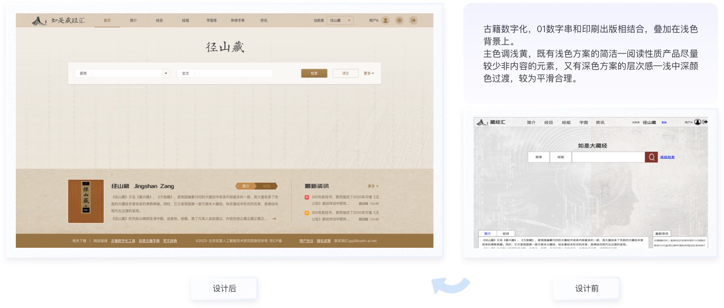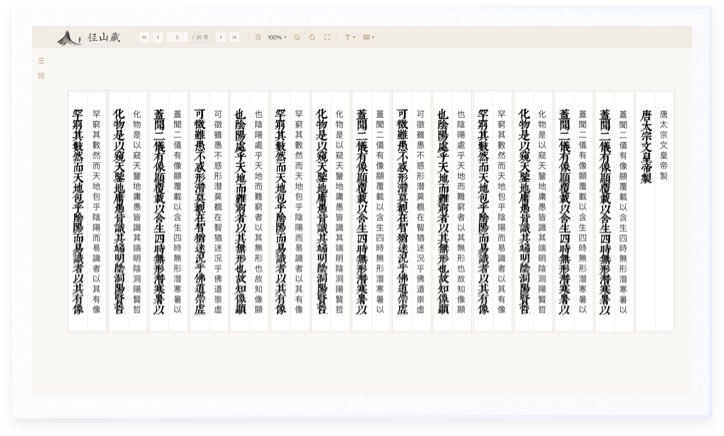 古書按列呈現(xiàn),每一列都制成為長(zhǎng)卡片,古體字和簡(jiǎn)體字一一對(duì)應(yīng),內(nèi)容和背景區(qū)分開且大量留白,列與列劃分明顯