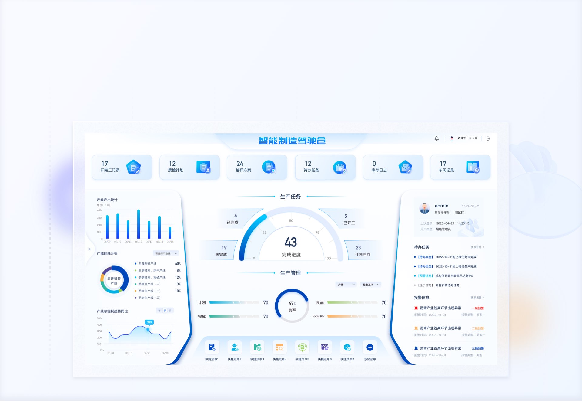 右側(cè)個(gè)人信息、待辦事項(xiàng)和報(bào)警信息區(qū)
